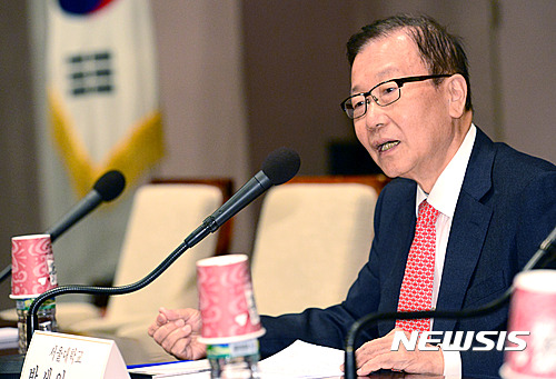 【서울=뉴시스】권현구 기자 = 4일 오후 서울 중구 프레스센터 국제회의장에서 열린 '2016 교육개혁 심포지엄 4차 산업혁명과 한국교육의 미래'에 참석한 박세일 서울대 명예교수가 주제발표를 하고 있다. 2016.10.04.