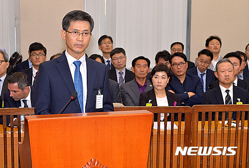 【서울=뉴시스】박진희 기자 = 12일 오후 서울 여의도 국회에서 열린 2016 안전행정위원회 행정자치부 국정감사에 출석한 김흥렬 KT&G 부사장이 감사위원의 질의에 답변을 하고 있다.
