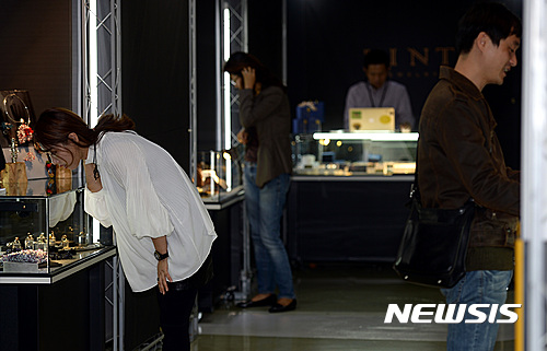 【서울=뉴시스】이영환 기자 = 18일 오후 서울 중구 동대문디자인플라자(DDP) 살림터에서 2016 패션위크의 일환으로 개최된 '2016 서울주얼리위크'에서 관계자들이 참여업체 상품을 살펴보고 있다