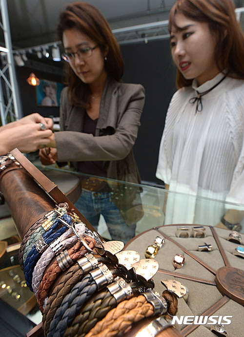 【서울=뉴시스】이영환 기자 = 18일 오후 서울 중구 동대문디자인플라자(DDP) 살림터에서 2016 패션위크의 일환으로 개최된 '2016 서울주얼리위크'에서 관계자들이 스쿠도(Scudo) 제품을 살펴보고 있다