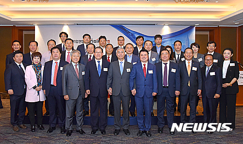 【서울=뉴시스】19일 오전 서울 소공동 롯데호텔에서 열린 한국중견기업연합회 제165회 아펙인사이츠 조찬강연회에 참석한 추궈홍 주한중국대사, 강호갑 중견련 회장 및 참석자들이 기념촬영을 하고 있다. 2016.10.19. (사진=한국중견기업연합회 제공)