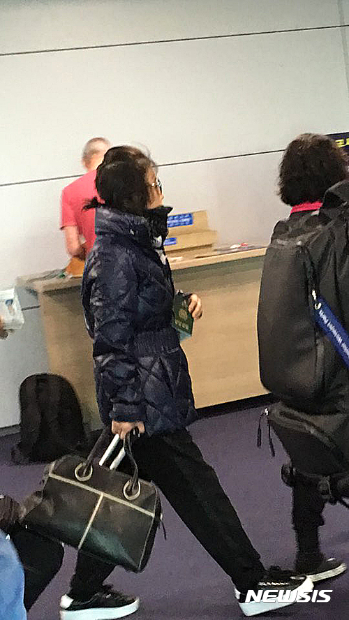 【서울=뉴시스】홍찬선 기자 = 비선실세로 알려진 최순실씨가 30일 오전 07시 30분 영국항공 BA017편입국하는 장면이 한시민에 의해 포착됐다. 2016.10.30.