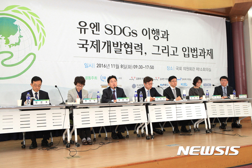 【서울=뉴시스】8일 서울 여의도 국회 의원회관 제1소회의실에서 한국법제연구원 주최로 '유엔 SDGs 이행과 국제개발협력, 그리고 입법과제'를 주제로한 세미나가 열리고 있다. 2016.11.08. (사진=한국법제연구원 제공)