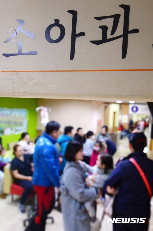 【서울=뉴시스】전신 기자 = 본격적인 추위가 시작되면서 예년보다 한 달이나 빨리 독감 유행주의보가 발령된 가운데 13일 서울 용산구 소화아동병원에서 어린이와 부모들이 진료를 기다리고 있다. 2016.12.13