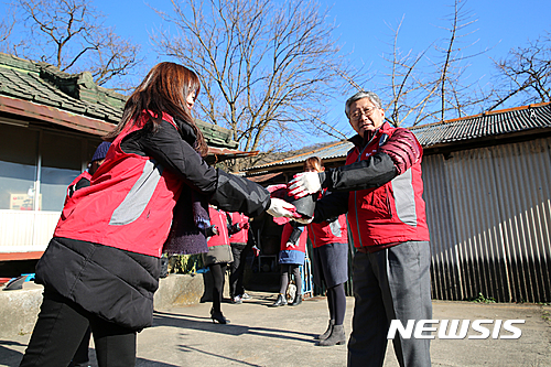 【대전=뉴시스】이시우 기자 = 16일 대전시 유성구 세동의 한 독거노인 가정에 기초과학연구원(IBS) 김두철 원장(사진 오른쪽)과 임직원들이 방문해 연탄을 직접 나르고 있다. 또 IBS는 이날 유성구 노인복지관에 성금을 전달하는 등 사회 공헌활동을 펼쳤다. 2016.12.16. (사진=IBS 제공)