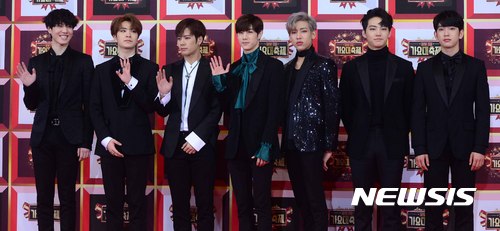 【서울=뉴시스】전신 기자 = 29일 서울 영등포구 KBS 신관 웨딩홀에서 열린 '2016 KBS 가요대축제' 포토월 행사에서 갓세븐이 포즈를 취하고 있다. 2016.12.29