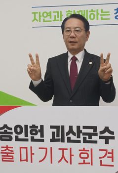 국민의힘 소속 송인헌 충북 괴산군수가 재선 도전을 공식 선언했다. 송 군수는 15일 괴산군청 브리핑룸에서 기자회견을 열어 "지난 4년간 뿌린 변화의 씨앗을 거대한 결실의 숲으로 완성하겠다"며 출마의 변을 밝혔다. 이어 "민선 8기 들어 정부공모사업 225건, 9333억원을 확보하며 예산 7000억원 시대를 열었다&q