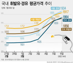 중동 리스크와 수급 불안정성에 따라 국내 기름값이 엿새 연속 오름세를 보이고 있다. 서울 시내 주유소에서는 휘발유 가격 차가 869원까지 벌어지는 등 주유소별 가격 격차도 크게 확대되는 모습이다. 6일 한국석유공사 유가정보시스템 오피넷에 따르면 이날 오전 10시 기준 서울 지역 평균 휘발유 가격은 리터당 1916.5원으로 집계됐다. 전날보다 2