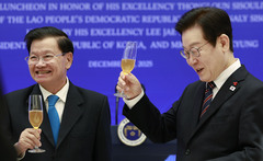 이재명 대통령은 15일 통룬 시술릿 라오스 국가주석과의 정상회담을 열고 "조금 전 소인수회담에서 올해 양국 재수교 30주년을 맞이해 양국의 관계를 포괄적 동반자 관계로 격상하기로 했다"고 밝혔다. 이 대통령은 이날 오전 대통령실에서 통룬 주석과 소인수 회담에 이어 확대 정상회담을 갖고 "양국 간의 호혜적이고 미래지향적인