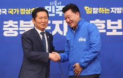 정청래 "신용한, 충북의 충복 될 것"…신용한 "절박한 마음으로 지선 임해"