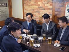 더불어민주당 한준호 의원과 송영길 전 대표, 김용 전 민주연구원 부원장이 4일 서울 여의도에서 만찬 회동을 가졌다. 이들은 이날 저녁 서울 여의도의 한 치킨집에서 만찬 회동을 했다. 이 자리에는 염태영 민주당 의원, 이한주 경제인문사회연구회 이사장도 함께했다. 한 의원은 회동 중간 기자들과 만나 "오늘 제 의정보고회에 김용(전 부원