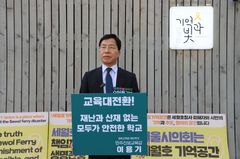 이용기 경북교육감 예비후보가 14일 '4·16 세월호 참사' 12주기를 맞아 '안전한 학교를 위한' 공약을 밝혔다. 이 후보는 "전교조 경북지부장을 역임할 당시 세월호 참사의 진상규명과 특별법 제정을 위한 대통령 면담을 요구했고 청와대 앞 노숙 농성 및 단식투쟁, 특별법 제정을 위한 1만명 서명운동 독려, 촛불집회를 개최하며 진상규명과