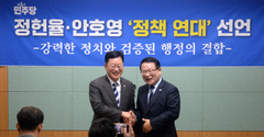 6·3 지방선거 전북도지사 선거를 앞두고 도전장을 낸 더불어민주당 4인 중 안호영 의원과 정헌율 익산시장이 정책연대를 통해 사실상 안 의원으로 단일화를 선언했다. 안 의원과 정 시장은 3일 전북자치도의회 브리핑룸에서 기자회견을 열고 "안 의원으로의 정책연대를 하기로 했다"고 공식 발표했다. 안 의원은 이날 "정치적