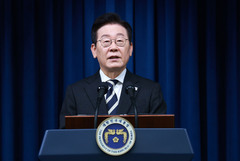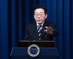 이재명 대통령은 3일 한미 정상이 합의한 한국의 우라늄 농축 및 사용 후 핵연료 재처리 권한 확대와 관련해 "도널드 트럼프 미국 대통령이 핵 재처리 또는 우라늄 농축을 한국이 자체 생산하고 5 대 5로 동업하자고 했다"고 말했다. 이 대통령은 이날 비상계엄 사태 1년을 맞아 청와대 영빈관에서 진행한 외신 기자회견에서 미국 정부 일