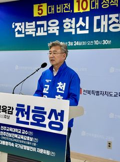 천호성 전북특별자치도교육감 예비후보가 교육비 부담 완화를 위한 '전북교육재단' 설립 공약을 제시했다. 천 예비후보는 31일 정책 발표를 통해 "교육 공공성 강화를 최우선 과제로 삼고, 모든 가정이 체감할 수 있는 실질적 교육비 절감 정책을 추진하겠다"고 밝혔다. 그는 교육 복지의 핵심으로 지속 가능한 안전망 구축을 강