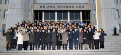 국회가 3일 비상계엄 1년을 맞아 국회의사당 정현관(본청 정문)에 헌법 구절을 새기는 제막식을 열었다. 우원식 국회의장과 더불어민주당·조국혁신당·진보당·기본소득당·개혁신당·사회진보당 등 6개당 원내대표는 이날 국회 본청 정현관 앞에서 열린 '글 새김 제막식'에 참석했다. 우 의장은 "민의의 전당인 이곳 국회의사당 정문에 1948