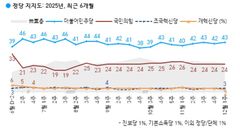 민주당 43%·국민의힘 24%…민주 1%p↑·국힘 변동없어[한국갤럽]