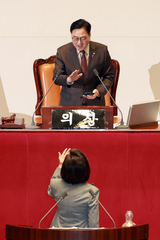 국힘 "우원식 의장, 나경원 필버 마이크 끄는 만행…국회선진화법 위반"