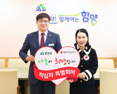 경남 함양군(군수 진병영)은 19일 군수실에서 나눔문화 확산과 인도주의 활동에 동참하기 위해 2026년 적십자 특별회비 100만원을 대한적십자사 경남지사에 전달했다고 20일 밝혔다. 이번 적십자 특별회비 전달식에는 진병영 함양군수, 박희순 대한적십자사 경남지사 회장, 이영미 대한적십자사봉사회 함양군협의회장 등 관계자들이 참석했다. 함양군은