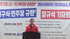 장규석(전 경남도의회 부의장) 국민의힘 경남도당 부위원장은 20일 진주시청 브리핑룸에서 기자회견을 열고 "'디도스(최구식 전 국회의원)-드루킹(김경수 전 경남도지사) 야합' 좌시하지 않겠다"고 밝혔다. 장 전 도의원은 "최 전 의원이 최근 민주당에 입당했다"라며 "그의 위선적인 정치행보에 실소를 금치 못