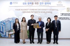 가톨릭관동대학교 국제성모병원은 최근 병원 의생명융합연구관 4층에서 엄홍길휴먼재단과 '사회공헌 및 국제 협력을 위한 업무협약'을 체결했다고 22일 밝혔다. 업무협약식에는 병원장 고동현 신부, 대외협력실장 김혜윤 교수를 비롯해 엄홍길 상임이사, 이순래 실장 등 양 기관 주요 관계자들이 참석했다. 이번 협약은 선한 영향력 확산을 목표로 국내외에 거주하