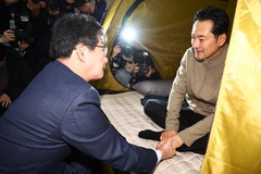 더불어민주당에 통일교·공천 헌금 쌍특검법을 요구하며 엿새째 단식투쟁을 이어가고 있는 장동혁 국민의힘 대표의 상태가 위중한 것으로 파악됐다. 장 대표는 병원 후송이 필요하다는 의료진의 권고에도 자리를 지키고 있는 것으로 알려졌다. 의사 출신인 서명옥 의원은 20일 오전 서울 여의도 국회 로텐더홀에서 기자들과 만나 "바이탈 사인 변화가 심하고 어