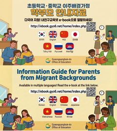 경북교육청이 이주배경 가정 학부모들의 자녀 교육 이해를 돕고 학교생활 적응을 지원하고자 다국어 교육자료를 보급한다고 20일 밝혔다. 이번 자료는 2023년 발간된 자료를 전면 개정하고 캄보디아어(크메르어)를 신규 추가해 모두 7개 언어로 만들어졌다. 초등학교용은 초등학교 살펴보기, 학교 행사, 올바른 학습 습관, 즐거운 학교생활, 건강하고