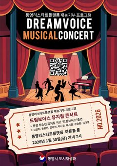 경남 통영시는 오는 30일 오후 7시 통영리스타트플랫폼 1층 아트홀 통에서 통영리스타트플랫폼 재능기부 프로그램 ‘드림보이스 뮤지컬 콘서트’를 개최한다고 20일 밝혔다. 이번 공연은 통영리스타트플랫폼 재능기부 프로그램의 일환으로 통영에서 활동하는 김민주 대표와 통영 청소년 뮤지컬 극단 ‘드림보이스(Dreamvoice)’ 단원 6명의 재능 나눔으로 마련된