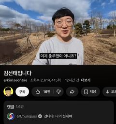 5김선태, 유튜브 개설 이틀째 구독자 60만…충주시가 단 댓글은