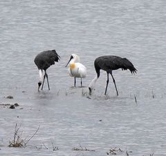 순천만 복원습지서 '흑두루미·저어새' 한 장면 포착