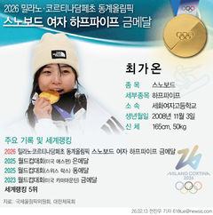 경기 양평군이 2026 밀라노·코르티나담페초 동계올림픽 스노보드 여자 하프파이프 종목 결승에서 우승한 스노보드 국가대표 최가온 선수(17)에게 축하 메시지를 전했다. 최가온 선수는 13일(한국시간) 이탈리아 리비뇨 스노파크에서 열린 결선 마지막 시기에서 고난이도 기술을 연이어 성공시키며 최종 90.25점을 기록해 우승을 차지했다. 대한민국