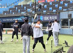 잠실 합류한 한화 노시환…김경문 감독 "목요일 경기부터 나갈 것"