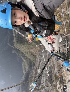 조국 조국혁신당 대표의 딸이자 유튜버로 활동 중인 조민씨가 중국 여행 중 아찔한 높이의 철제 사다리에 오른 근황을 전해 화제를 모으고 있다. 조씨는 2일 자신의 사회관계망서비스(SNS)에 '장가계(Zhangjiajie·张家界)'라는 문구와 함께 여러 장의 사진을 게시했다. 공개된 사진 속 조씨는 안전모와 등반용 장비를 착용한 채 깎아지른 듯한