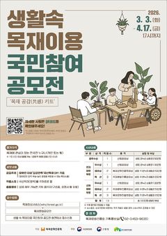 산림청은 목재교육 기회 확대와 생활 속 목재 이용 활성화를 위한 국민참여 공모전 '목재공감 키트' 작품접수룰 다음달 17일까지 진행한다고 5일 밝혔다. 올해로 두 번째로 열리는 이번 공모전은 장애인이 직접 제작하고 체험할 수 있는 국산목재 DIY 키트를 국민 아이디어로 발굴해 장애인 복지시설과 특수학교 등에 보급키 위해 마련됐다. 공모 주제는
