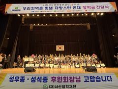 서산장학재단은 '우리 지역을 빛낼 인재 장학금 전달식'을 열고 서산·태안 장학생 등 238명에게 2억5860만원의 장학금을 지급했다고 9일 밝혔다. 이번 장학금 전달식 지난 8일 오후 서산시문화회관 대공연장에서 열렸다. 장학금 전달식에서 조규선 이사장 등이 서산·태안 지역 장학생, 충남13개 지역 장학생, 특별장학생(초·중·고·대학생) 238