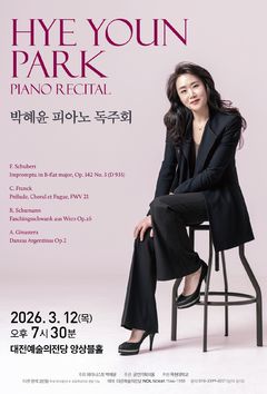 목원대학교는 음악교육과 박혜윤 교수의 피아노 독주회가 12일 오후 7시30분 대전예술의전당 앙상블홀에서 열린다고 9일 밝혔다. 슈베르트의 즉흥곡 B♭장조 Op.142-3으로 조용하고 서정적인 문을 연다. 이어 세자르 프랑크의 '전주곡, 코랄과 푸가'가 치밀한 대위법과 장대한 구조미를 들려주고 슈만의 '빈 사육제' Op.26이 낭만주의 특유의 위트