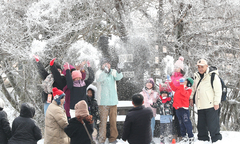 기습 추위가 절정에 달한 4일 오전 제주 한라산 1100고지를 찾은 관광객들이 활짝 피어난 상고대를 감상하며 겨울 정취를 만끽하고 있다. 제주지방기상청에 따르면 이날 오전까지 가끔 비 또는 눈이 내리는 곳이 있겠다. 예상 적설량은 한라산 등 고지대에 1~5㎝ 정도다. 제주중산간에도 1㎝ 안팎의 눈이 내려 쌓일 전망이다. 아침 최저기온은 3~7