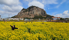 [뉴시스 앵글]꽃샘추위 뚫고 찾아 온 봄…서귀포 유채꽃 활짝