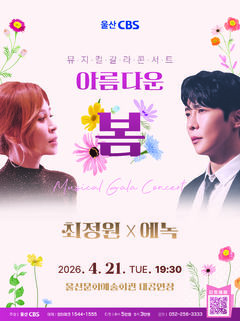 울산CBS가 창립 22주년을 맞아 오는 21일 오후 7시 30분 울산문화예술회관 대공연장에서 뮤지컬 갈라 콘서트 '아름다운 봄'을 무대에 올린다. 이번 공연에는 인기 뮤지컬 배우 최정원과 에녹, 뮤지컬 갈라 콘서트 팀 '더 뮤즈'가 출연해 무대를 꾸민다. 공연에서는 영화 '라라랜드', 뮤지컬 '시카고', '맘마미아', '오페라의 유령', '킹