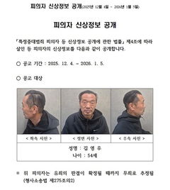 전 연인을 살해한 혐의(살인)로 구속된 50대 남성의 신상 정보가 4일 공개됐다. 충북경찰청은 이날 오전 9시 충북경찰청 홈페이지 공지사항 게시판에 살인, 사체유기 혐의로 구속된 김영우(54)의 신상정보를 공개했다. 김영우의 신상은 내년 1월5일까지 30일간 게시된다. 도내에서 범죄자 신상 정보가 공개된 건 이번이 처음이다. 경찰은 전날