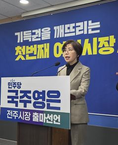 국주영은 전북특별자치도의원이(더불어민주당 당대표 특별보좌관)이 15일 전주시장 출마를 공식 선언했다. 국주 의원은 이날 전주시청에서 출마 기자회견을 열고 "기득권을 깨뜨리는 첫 번째 여성시장이 전주의 담대한 변화가 될 것"이라며 "7000억원에 이르는 전주시 부채 문제 해결이 시민 행복의 출발점"이라고 밝혔다. 그는