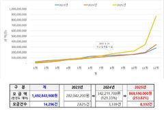 경남 통영시의 2025년 고향사랑기부금 모금액이 8억6000만 원을 돌파했다. 통영시는 2025년 고향사랑기부금 모금액이 8억6000만 원을 돌파해 경남 지역 모금액 3위를 차지했다고 15일 밝혔다. 이는 제도 시행 첫해인 2023년부터 지난해까지 중 역대 최대 규모로, 통영시는 3년간 총 약 15억 원의 기부금을 모금하는 쾌거를 이뤘다.