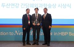 박정익 울산대학교병원 외과 교수가 로봇 기반 단일공 담낭절제술의 효과를 과학적으로 입증, 국내 간담췌외과학 발전에 기여한 공로로 학술상을 받았다. 울산대병원은 박정익 교수가 최근 인천 하얏트 리센시에서 열린 제4회 두산연강 간담췌외과학술상 시상식에서 학술상을 수상했다고 2일 밝혔다. 박 교수는 '단일공 담낭절제술의 수술 후 결과