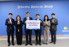 NH농협은행 울산본부는 9일 울산교육청에서 천창수 교육감과 백창훈 농협은행 울산본부장 등이 참석한 가운데 '울산교육청 제휴카드'로 조성한 기금 6억3000여만 원을 전달했다고 밝혔다. 농협은 2006년부터 해마다 기금을 조성해 올해까지 총 69억4000여만 원을 전달했다. 농협은 또 지난해 울산지역 초·중·고교를 방문해 '금융사기 예방교육