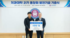 전북대학교는 치과대학 21기 졸업생들이 모교 발전과 후학 양성을 위해 4000만의 발전기금을 기부했다고 18일 밝혔다. 전북대 발전지원재단은 전날 대학본부 총장실에서 양오봉 총장과 대학 주요 관계자, 치과대학 관계자 등이 참석한 가운데 발전기금 기증식을 열고 기부에 대한 감사를 전했다. 이번 기부는 지난 20여 년간 치과의사와 교수 등으로 활동하