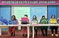 제주 환경단체가 돌고래 보호구역 내 낚시 및 선박 관광 중단을 촉구하고 나섰다. 해양환경단체 핫핑크돌핀스는 1일 제주도의회 도민카페에서 기자회견을 열고 "제주남방큰돌고래 보호구역 내 낚시 행위와 선박 관광을 금지하라"고 밝혔다. 핫핑크돌핀스는 "올해 4월 제주남방큰돌고래 서식지 일부인 서귀포시 대정읍 신도리 앞바다가 해