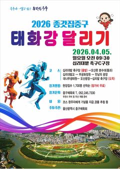 울산 중구는 내달 5일 오전 9시 태화강국가정원 일원에서 '2026년 종갓집중구 태화강달리기' 행사를 연다고 30일 밝혔다. 이번 행사는 울산 중구 체육회 주최·주관으로 진행된다. 태화강달리기는 십리대밭 축구장에서 출발해 오산못 분수대~십리대밭교~무궁화정원(반환점)~만남의광장~대나무생태원~오산광장을 거쳐 원점으로 되돌아오는 4km 구간(코스