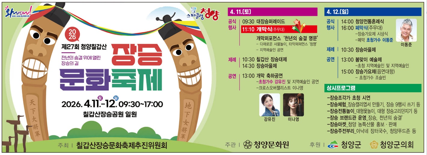 충남 보령시에서 오는 11일 '제20회 주산벚꽃축제'와 '옥마산봄꽃축제'가 펼쳐진다. 보령시에 따르면, 주산벚꽃축제는 주산면 화산천변 축제장에서 오전 11시~오후 4시 열린다. 주민화합 노래자랑, 초청가수 및 청소년 댄스 동아리팀 축하공연, 경품추첨이 진행되며, 특산물 판매 및 체험 부스도 4곳 마련된다. 축제장 일대