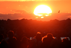 병오년(丙午年) 첫 날. 맑은 날씨를 보인 이날 오전 7시께 부산 해운대해수욕장에는 아직 어둠이 채 가시지 않았지만 첫 해를 보기 위해 모인 시민과 관광객으로 일찌감치 북적였다. 이날 해운대구 체감온도는 영하 4.5도. 1.2도였던 지난해보다 추운 날씨였지만 두꺼운 외투에 귀마개, 목도리를 단단히 두른 시민들의 표정에는 새해를 맞는 기대감이 묻어났