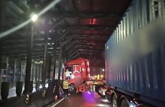 부산 동서고가로서 빗길에 트레일러 분리대 충돌…일시 통제
